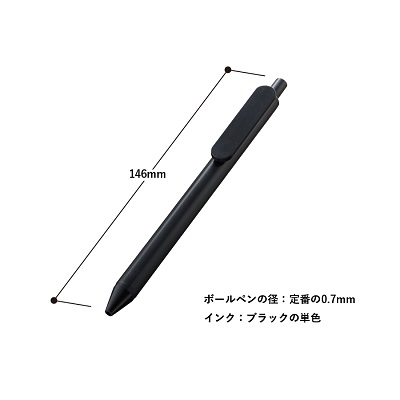 ボールペンの径は定番で使いやすい0.7mm、インクはブラックの単色です。クリップ部分が広くフラットなため、通常のボールペンより広い印刷範囲になります。 インクジェット印刷はクリップ全面にフルカラー印刷が可能のため、 会社ロゴやイメージキャラクターのデザインもでき、備品やノベルティとしてご活用いただけます。
