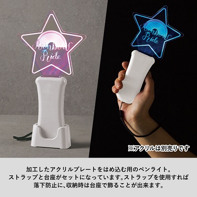 別売りのアクリルと、アクリルパーツを使用することで、ペンライトとして使用することができます。