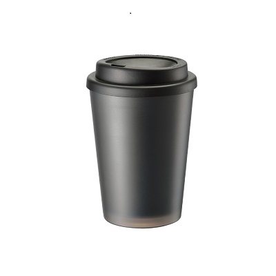 プラスチック2層構造で、温かい飲み物を入れても外側が熱くならず、安心して持ち運びいただけます。側面に大きく回転シルクで名入れすれば、まるでおしゃれなカフェの販売グッズのようなオリジナルタンブラーを作ることができます。