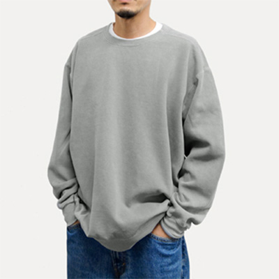 ビンテージ感のある風合いで洗いのかかった後染め商品です。古着のような味のある質感にファンが多いトレーナーです。そで口はリブ付き、ネック・裾はダブルステッチでしっかりとした作りになっています。