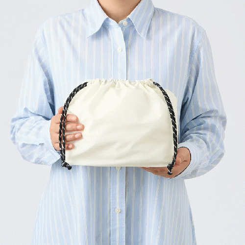 上質な光沢感としなやかでさらっとした手触りが特徴のファインライトポリを使用した巾着です。