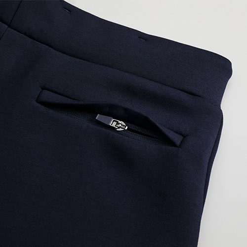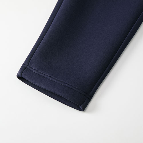 2枚の生地を中糸で繋ぎあわせたダンボールニット生地のパンツ。生地の中に空気の層ができるため、軽量で、保温性は折り紙つき。肌寒い季節には特に重宝すること間違いなしの一枚です。ワタリ幅は広すぎず、ゆるやかにテーパードしたすっきりめのシルエットが動きやすさも担保。裾口はあえてリブではなく2本針始末を採用したことで、スウェットパンツのような野暮ったさがなくアーバンテイストな仕上がりに。