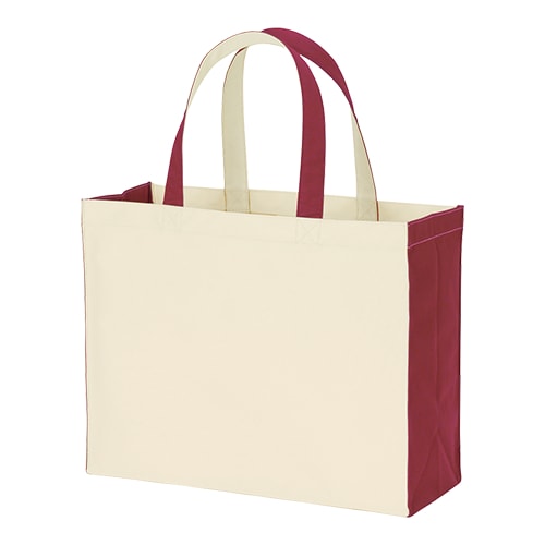 収納力バツグンの大きいサイズ感と、使いやすい落ち着いた色味で幅広い世代から人気のトートバッグです。バッグの中の物を探しやすいスクエア型は、人気が上昇中!バッグの中の整理が苦手な人は、整理整頓がしやすいこのスクエアトートを持つのがオススメです。中に入れたものの出し入れもしやすいので、「必要なものがすぐにさっと取り出せる」と子育て世代の方から人気のアイテムです。ポリエステル素材で、しっかりした生地のわりに軽量で扱いやすいのもオススメのポイント。持ち手・側面部分のアクセントカラーに合わせた色のインクでプリントをするとまとまりが出てオススメ!