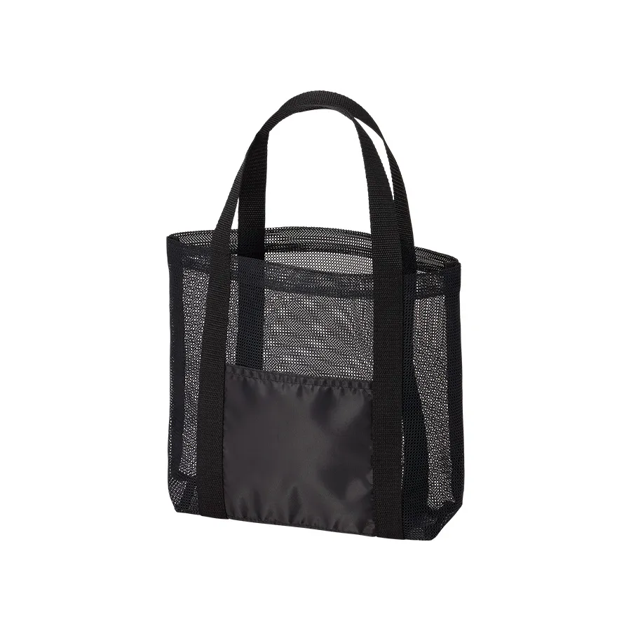 メッシュ素材がポイントのトートバッグ。貴重品やペットボトルが入るサイズ感です。