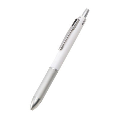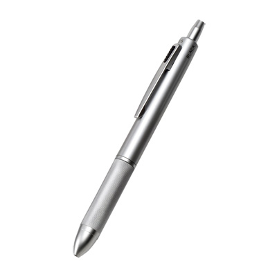 メタリックな質感がクールなペンです。赤・青・黒の3色のボールペンと0.5mmのシャープペンが1本になった実用的なアイテム。