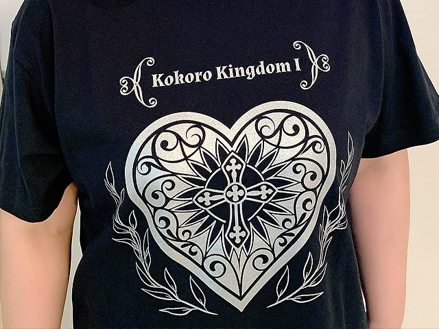 この度は素敵なお写真をお送りいただき、誠にありがとうございます! ハートにクロスをあしらった印象的なデザインが特徴の「著書『ココロ・キングダムI』の出版記念Tシャツ」を作成させていただきました! シルバーのプリントで、繊細さと力強さを兼ね備えた一枚に仕上がりました。 コンセプトに込めた“想い”がしっかり伝わるデザインで、 ご購入いただいた方からも喜んでいただけているようでこちらも嬉しく存じます♪ 今後ともどうぞよろしくお願いいたします!