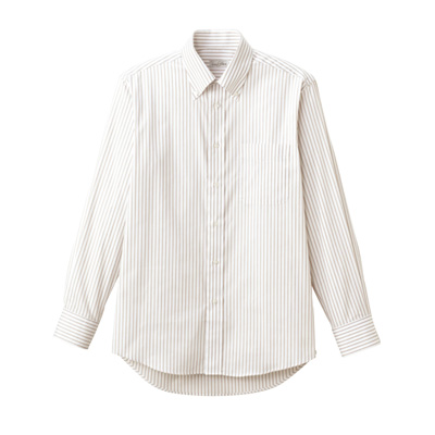 ストライプ長袖シャツ(FB4508U)は、細すぎず太すぎないピッチがバランスの良いストライプシャツです。カラーは9色展開で、どの色も柔らかな色味で明るい印象を与えてくれます。ノーネクタイでもきちんと感を保てるボタンダウン仕様の襟元でユニフォームにも最適。