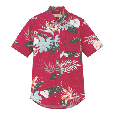 ボタンダウンアロハシャツ(花全柄)(FB4518U)は、さまざまな形・色のリーフがあしらわれた爽やかなデザインが魅力です。花柄すぎると男性にはちょっと抵抗がありますが、こちらのアロハシャツは控えめなリーフ柄なので、男女問わずにご着用頂けます。ボタンダウン仕様でユニフォームにも最適。