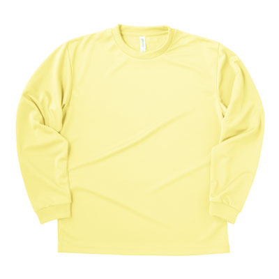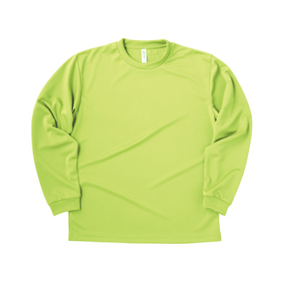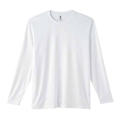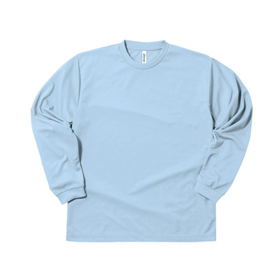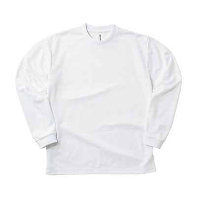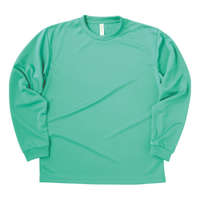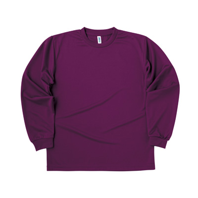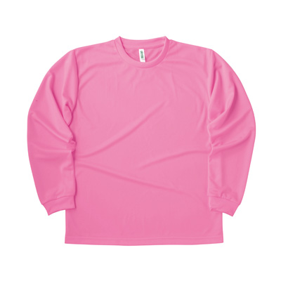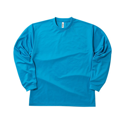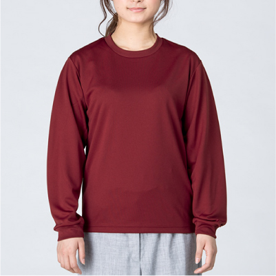 00304 ドライロングスリーブTシャツは、ポリエステル100%仕様で、薄く、軽く、速乾性に優れた素材です。メッシュの細かな凸凹やスケ感は、見た目も手触りも爽やか。高い通気性が自慢です。UVカット機能付きで屋外でも安心◎