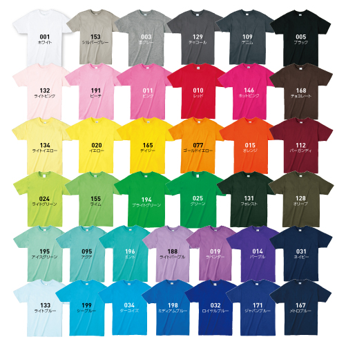 00083 ライトウェイトTシャツは、優れたコストパフォーマンスとしなやかな風合いが特徴。少しタイトなシルエットに、薄手の天竺生地を使用したソフトな素材感。豊富な20色のカラー展開に、サイズは7サイズをご用意。価格もデザインも「嬉しい」が詰まった、日常から各種イベントまで色々使える良品アイテムです。