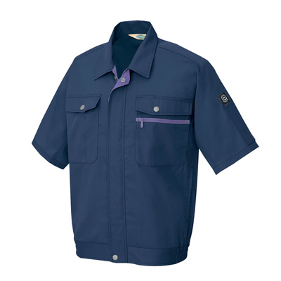 半袖ブルゾン(AZ5371)は環境に優しい再生素材を利用した、エコマーク付きのワーキングウェアです。静電気帯電防止作業服の規格に適合した商品で、静電気による事故の発生を未然に防ぎます。肩・腕を動かしやすい独自の「スイングスリーブ」仕様で、屋内でも屋外でも快適な着心地です。