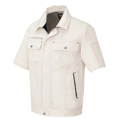 エコサマー仕様の、半袖ブルゾン。腕部分はドルフィンカットで腕を上げる動きにあわせて袖付けを施しているので、驚異的な動きやすさを実現。