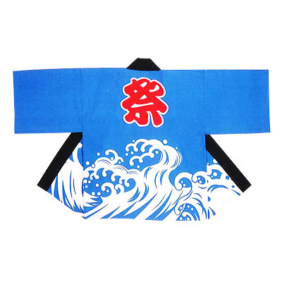 両襟に「御祭礼」と入った本格的なお祭りハッピです。手ぬぐいと帯がセットになっております。堅牢度の高い反応染めですので、長いご使用にもおすすめ。
