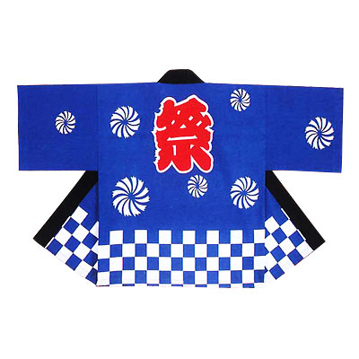 市松模様がお祭り・イベント気分を盛り上げてくれるはんてん(はっぴ)です。背中や襟にオリジナルのプリントを入れることが可能です!