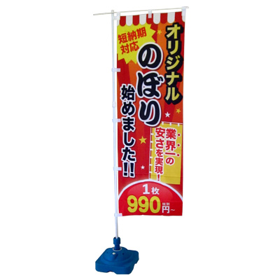 レギュラーサイズより150mm短い、幅450mm×高さ1,800mmサイズののぼり旗です。