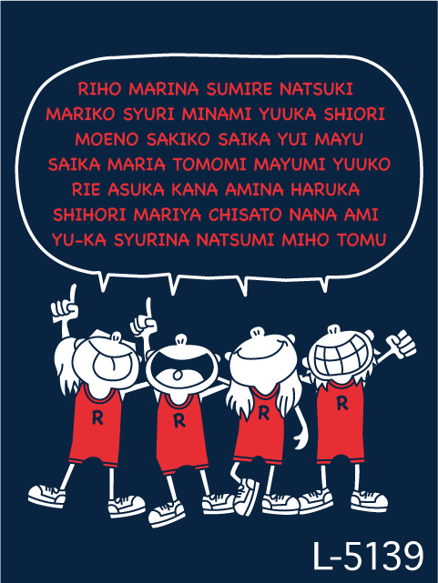 肩を組んだポップなキャラクターが大人気のデザイン。いろんな部活ごとのデザインがあるので、気になったら問い合わせてみてくださいね。