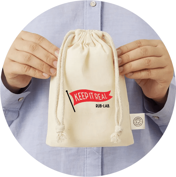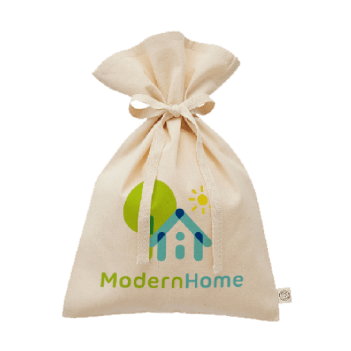 ラッピング巾着(M)オーガニックコットンマークがついた細々としたものを入れるのに便利な巾着。