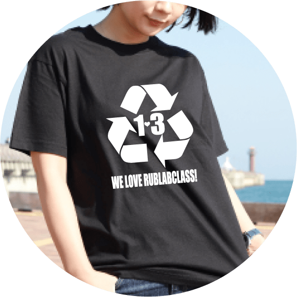 ポリエステルTシャツ約17本の再生ペットボトル(500ml)から作られており、SDGs(持続可能な開発目標)の2つの項目「つくる責任、つかう責任」「海の豊かさを守ろう」にフォーカスしたポリエステル素材で出来たエコTシャツです。
