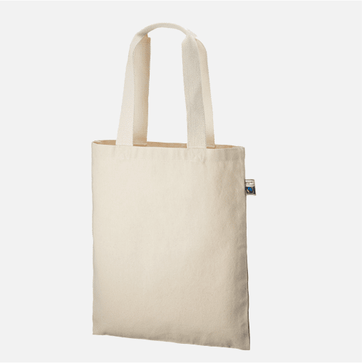 フラットトート国際フェアトレード認証ラベル付きのA4サイズトート。